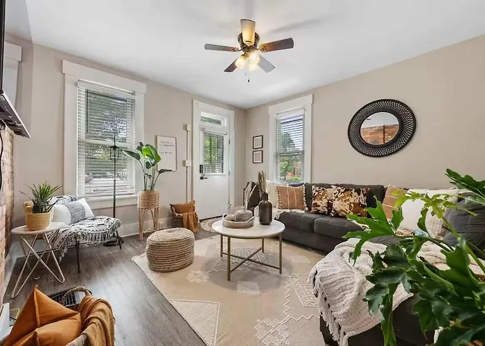 La villa Sophisticated Boho Condo Walkable Columbus comprende un angolo cottura attrezzato con una lavastoviglie, una macchina per caffè e tè e un frigo. Gli ospiti possono cenare al ristorante Plank's Cafe & Pizzeria on Parsons, che si trova a 100 metri. La struttura è inoltre situata abbastanza vicino alla fermata dell'autobus E Livingston Ave & Ann St.
